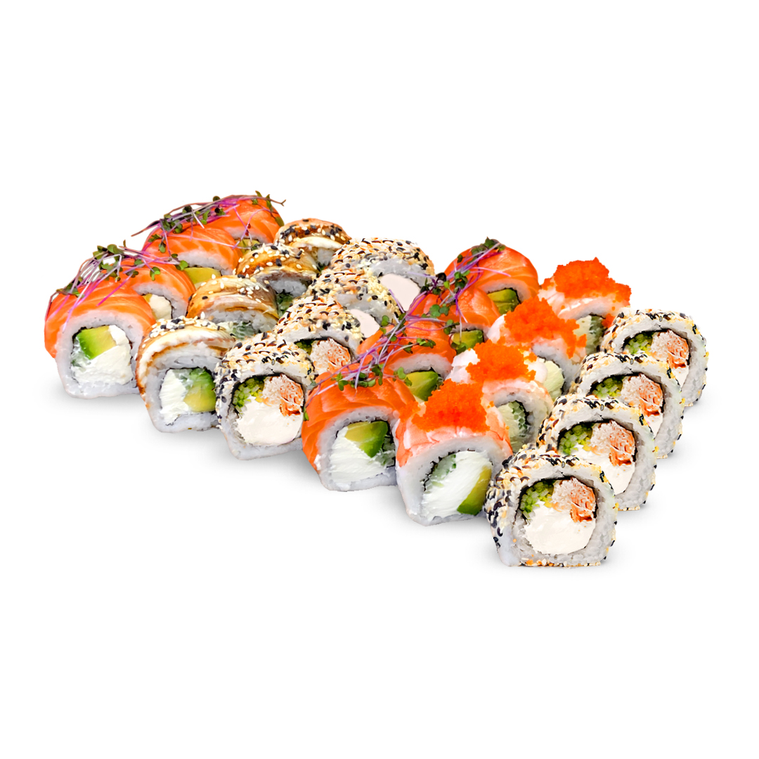 Филадельфия с лососем и угрем, Филадельфия с лососем и креветками, Филадельфия в кунжуте с лососем гриль
